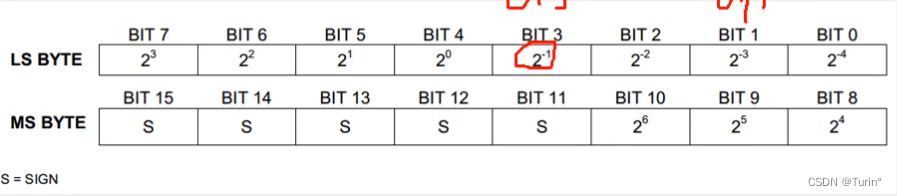 MS BYTE和LS BYTE两个字节中BIT的解释: