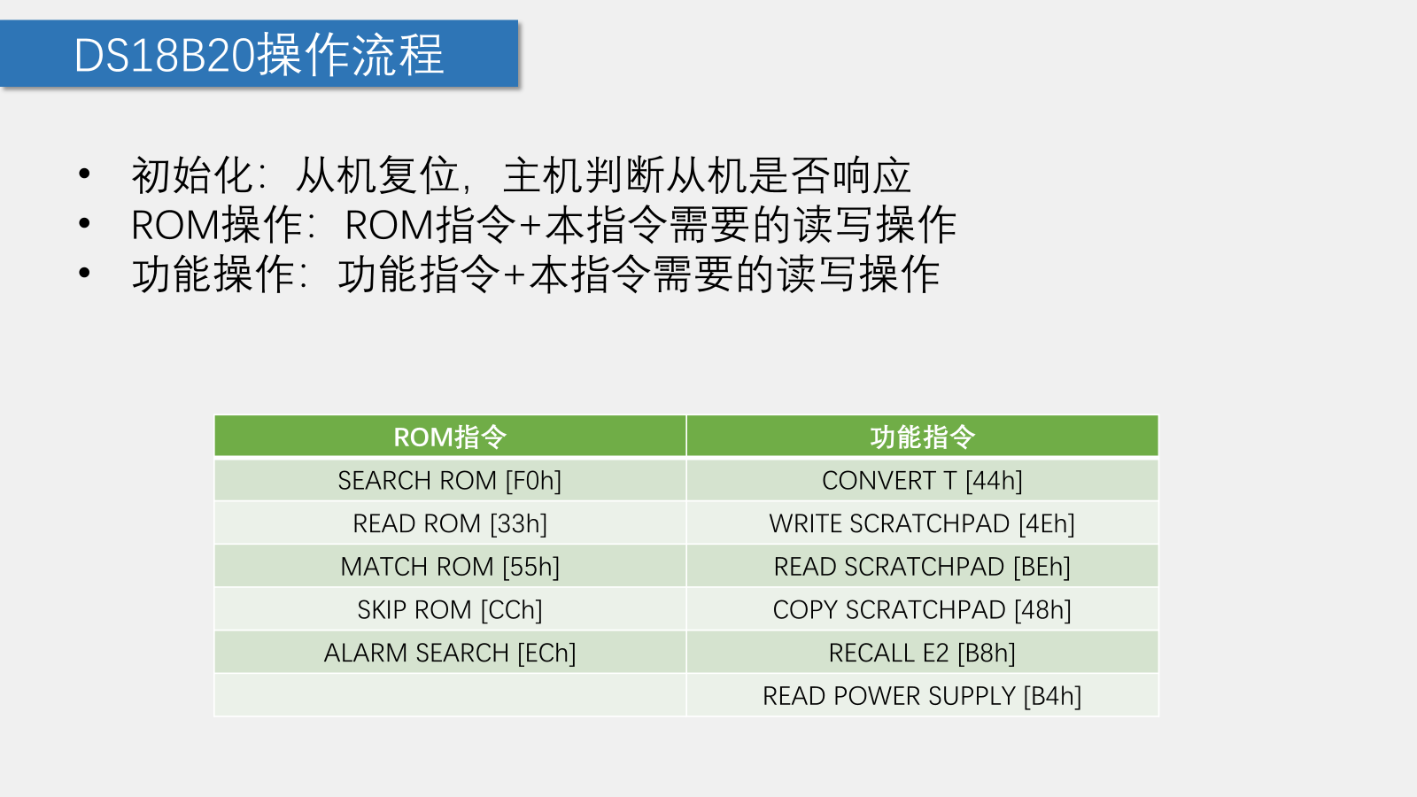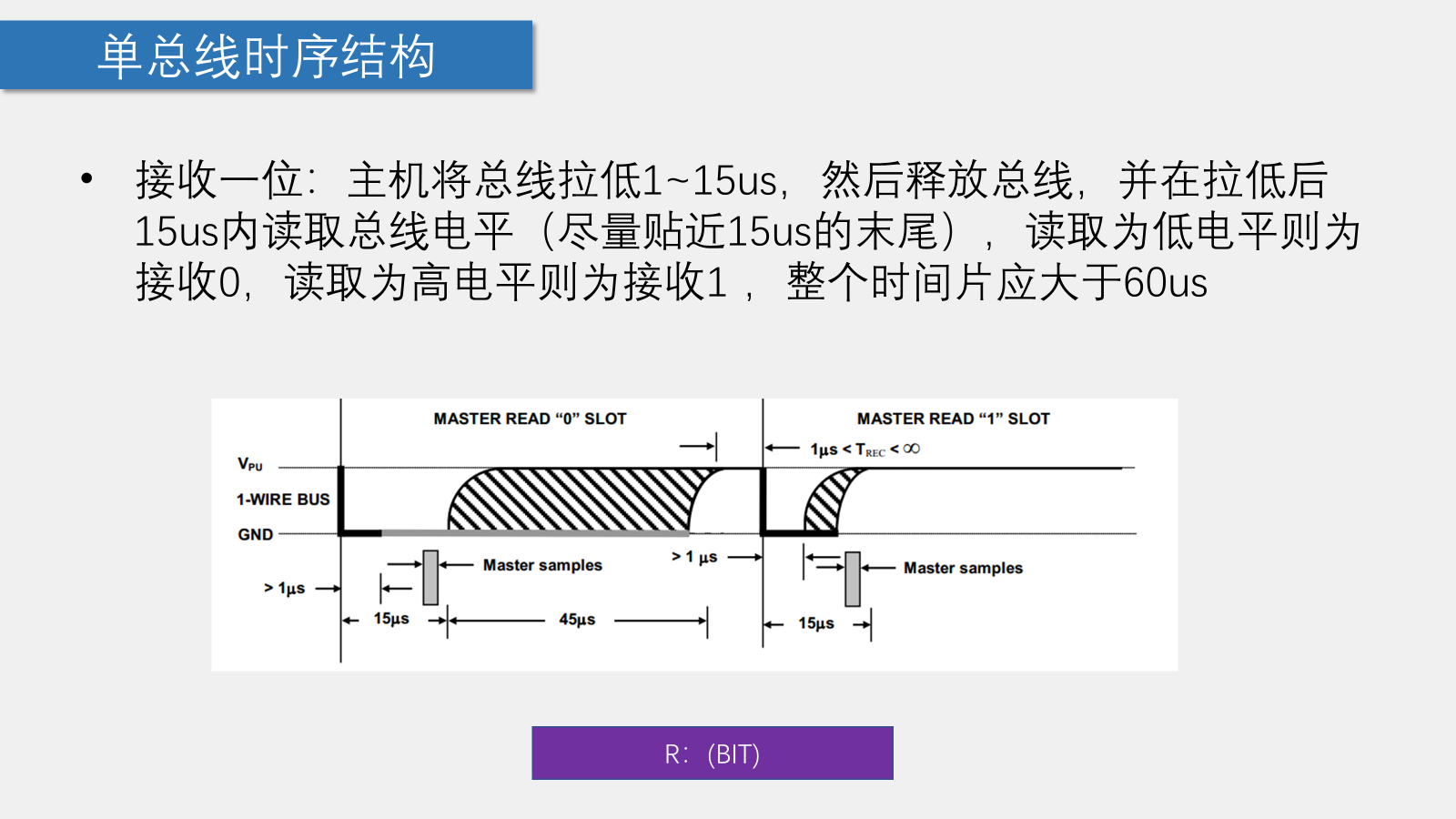 void OneWire_Init(void) { unsigned char i,AskBit; OneWire_DQ=1; OneWire_DQ=0; i = 227;while (--i);//500um OneWire_DQ=1;//释放总线 i = 29;while (--i);//70um AskBit=OneWire_DQ;//主机判断从机是否发送应答 i = 227;while (--i);//500um,要根据时序图构造代码 }
